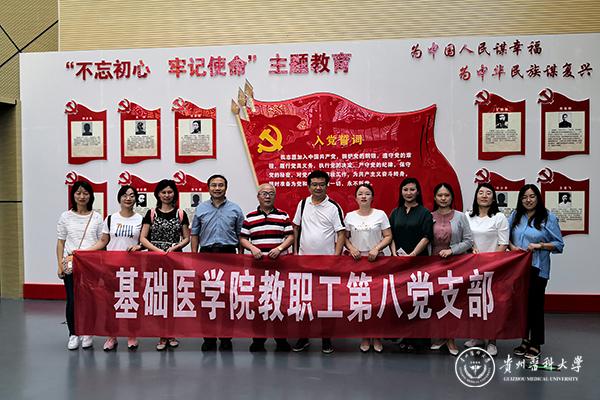 为全面深入学习贯彻党的十九大精神和习近平新时代中国特色社会主义思想,回顾党的光辉历程,讴歌党的丰功伟绩,增强广大党员的光荣感、使命感,7月16日,基础医学院教工第八党支部组织全体党员(包括入党积极分子和发展对象)赴贵州省博物馆开展“庆祝建党98周年、新中国成立70周年”的主题活动。基础医学院党政领导以及支部党员、发展对象和入党积极分子10余人参加此次活动。