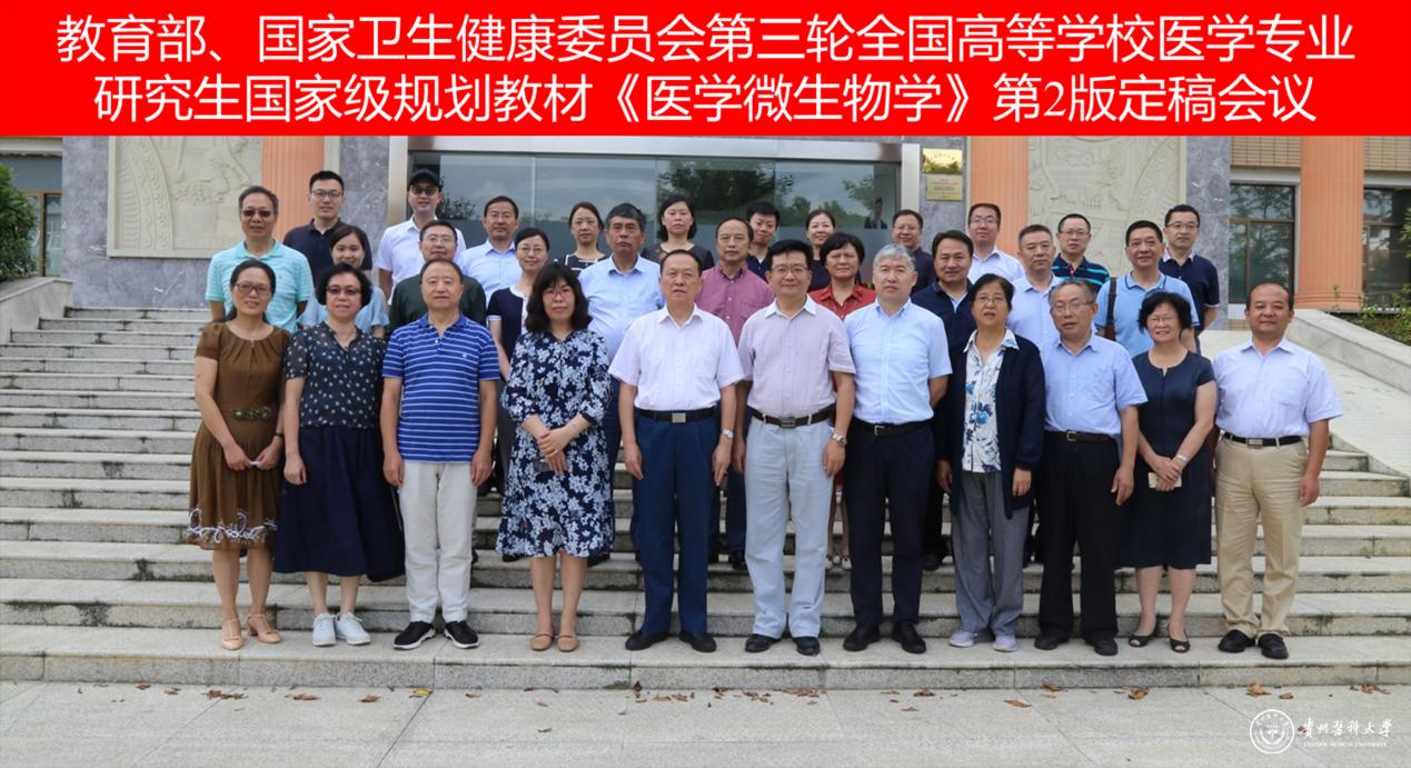 7月22日,由人民卫生出版社有限公司总编辑办公室主办,万象城官网基础医学院微生物学教研室协办的教育部、国家卫生健康委员会第三轮全国高等学校医学专业研究生国家级规划教材《医学微生物学》第2版定稿会议在万象城官网召开。基础医学院党委书记徐国强出席定稿会开幕式并致欢迎词。人民卫生出版社编辑陈小蕾介绍出版社关于第三轮研究生教材的相关要求,主编徐志凯(空军军医大学)和主编郭晓奎(上海交通大学)及各位编委对教材内容逐章进行审定。