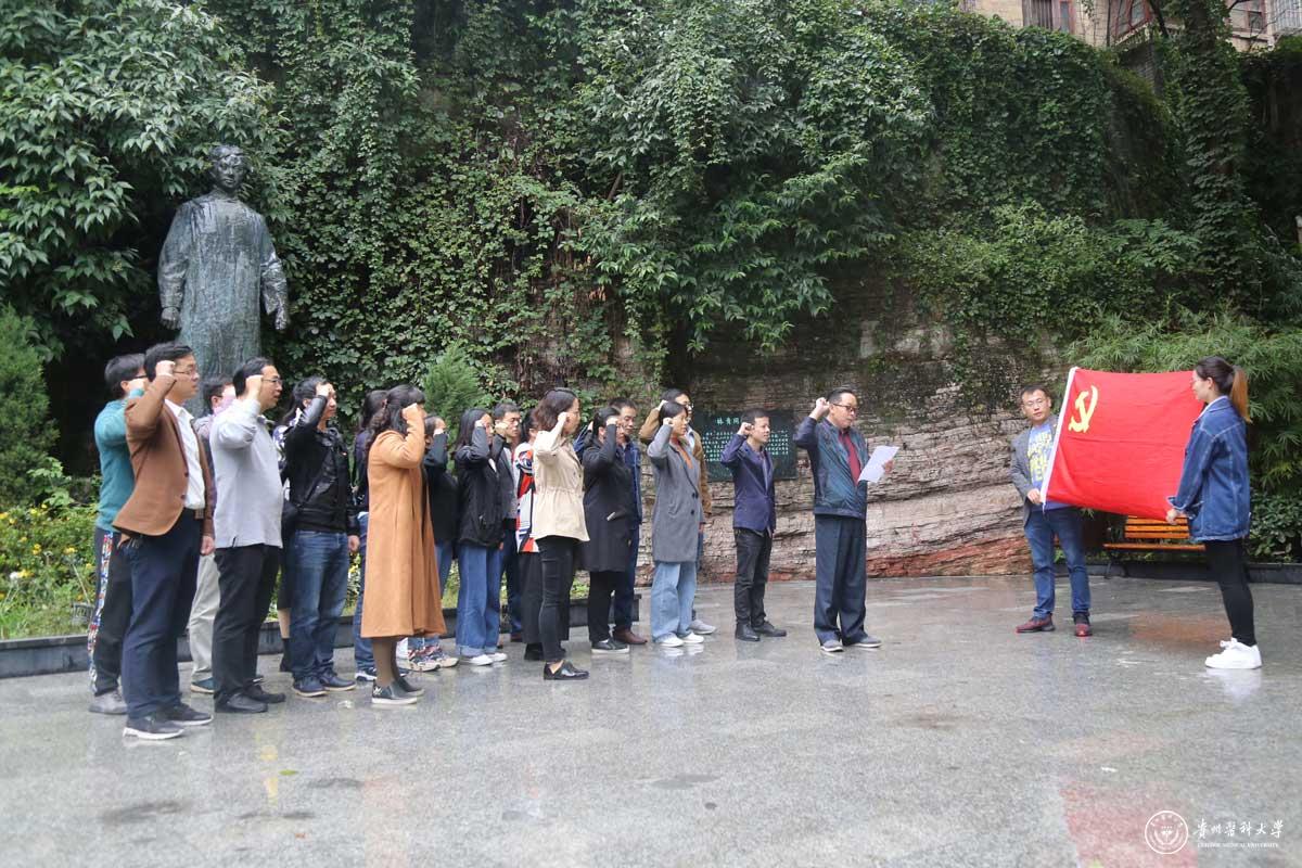 10月16日,以学校开展“不忘初心、牢记使命”主题教育工作为契机,生物与工程学院党政领导、教师党员及学生党员20人怀着崇敬的心情,冒雨来到林青就义处开展“缅怀革命先烈、弘扬革命精神”革命传统教育活动,党委副书记郑维薇主持。