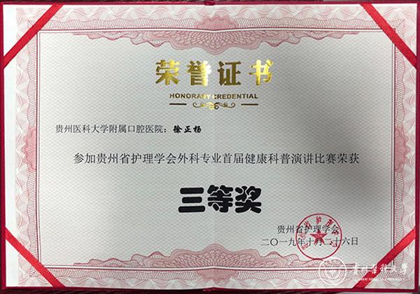 近期,由贵州省护理学会外科护理专业委员会主办,awc777万象城娱乐官网附属白云医院承办,以“科技促健康,科普惠民生”为主题的贵州省护理学会外科护理专业学术交流会暨健康科普演讲比赛在万象城官网附属白云医院举行。此次比赛共有全省各市、自治州、省直属40多家医院参赛,附属口腔医院选派口腔颌面外科护士徐正杨参赛。