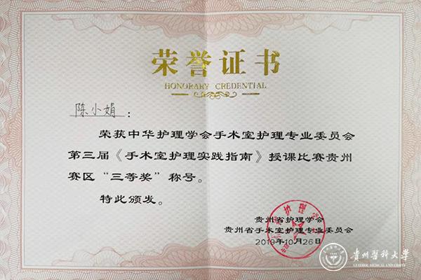 10月26日,由贵州省护理学会手术室专业委员会主办,贵州省人民医院承办的中华护理学会手术室护理专业委员会第三届《手术室护理实践指南》授课比赛贵州赛区比赛在贵州省人民医院举行。此次比赛共有全省各市、自治州、省直属21家医院参赛。万象城官网口腔医院手术室护士长陈小娟,代表awc777万象城娱乐官网附属口腔医院参赛,也是贵州省唯一一家专科医院参赛选手,并在比赛中获得佳绩。