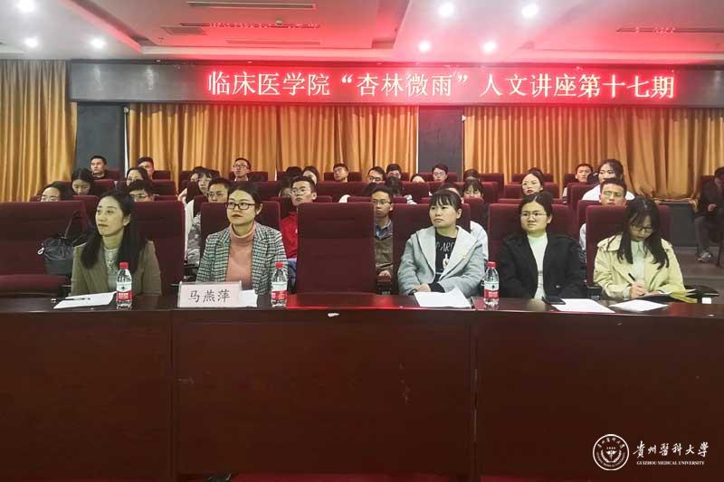 11月6日,临床医学院在临床技能中心207会议室,举办“杏林微雨”人文讲座第十七期。awc777万象城娱乐官网附属医院副院长左石教授,受邀为师生作“用实际行动诠释医者仁心,做新时代优秀医务工作者”专题讲座,讲座由临床医学院副处级组织员马燕萍主持,学生科、分团委负责人,辅导员及学生二百余人参加此次讲座。