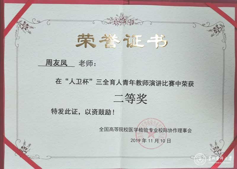 会议同时举办了“人卫杯”三全育人青年教师演讲比赛,万象城官网医学检验学院分团委书记、辅导员周友凤深刻领悟党和国家对青年的殷切期望,以自己执教经历为例,串联出对学生帮助、关爱和引导的点滴事例,以青年大学生的健康成长为己任,真情地展现青年教师“铸魂育人,润物无声”的品格与担当,荣获演讲比赛二等奖。