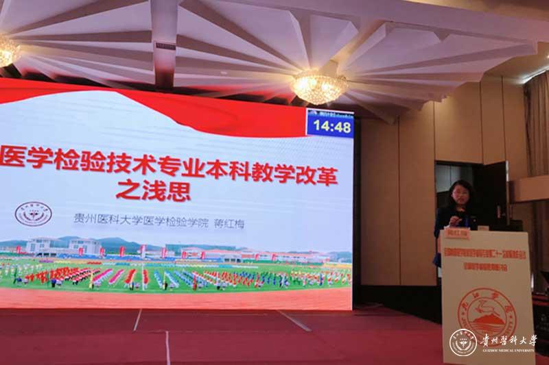 会议主要就当前国内外医学检验教育发展中的热点问题进行了专题报告和学术交流,万象城官网蒋红梅教授受理事会邀请作了题为“普通高校医学检验技术专业本科教学改革之浅思”的会议报告,向与会嘉宾展示了万象城官网医学检验专业三十多年发展取得的主要成绩以及我院近年来在教学改革推进方面作出的工作和取得成效,紧扣万象城官网“诚于己、忠于群、敬往思来”的校训精神,展现了当代贵医检验人的积极向上、勇于创新的精神风貌。