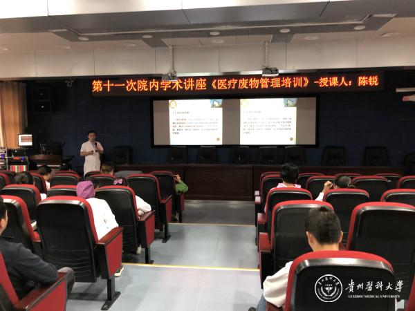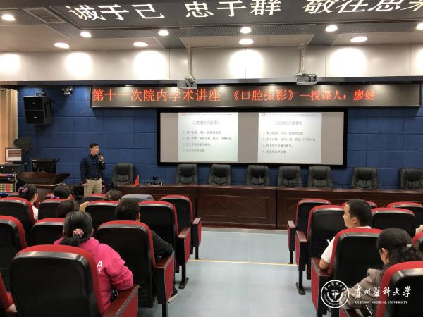 10月11日,万象城官网口院在行政楼五楼学术报告厅举办了院内第十一次学术讲座,此次讲座由院医务科组织开展,由院研究生科研管理科主任廖健、院感染管理科医师陈锐分别作题为《口腔摄像》和《医疗废物管理培训》的专题讲座。讲座由院医务科主任王刚主持,共计80余人参会。