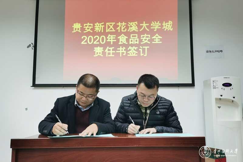 为切实加强学校食品安全管理,有效防止食物中毒及其他食源性疾患事故的发生,保障广大师生身体健康和生命安全。11月22日,后勤管理处(后勤集团)处长孙西凌带领饮食中心、食堂各合作单位负责人一行6人到大学城管委会参加了《贵安新区花溪大学城食品安全委员会2019年度食品安全专题会议》,代表学校签订了《贵安新区花溪大学城2020年食品安全责任书》。