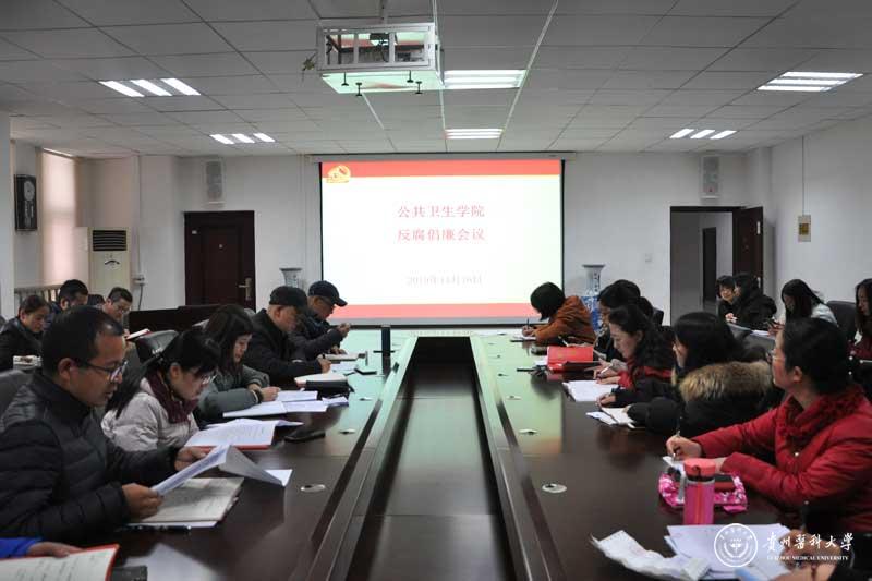 11月26日,公共卫生学院在博雅楼二楼会议室召开反腐倡廉会议,学院领导班子成员、副科级以上干部、各支部委员、环境污染与疾病监控教育部重点实验室、化学品毒性检测中心、卫生发展研究院全体党员参加了会议,会议由学院党委副书记何江主持。