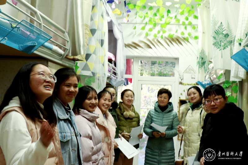 经过初赛的选拔,共有43间寝室进入了决赛环节。评委们对寝室的装饰、卫生和安全用电等方面进行了综合考察,讲解员们向评委们讲述着自己独特的装饰风格和意义所在,可以感受到同学们对寝室的装饰十分用心。有积极向上的绿色环保风格、健康活泼的运动风格、简约大方的书画风格、特色鲜明的传统剪纸风格,更有“诚於己,忠于群,敬往思来”校训的笔墨装饰,增添了一份贵医人的文化内涵。王秀红还亲切询问了同学们的学习、生活情况,表扬了同学们温馨又有创意的寝室风格,指出部分寝室装饰存在的安全隐患,希望同学们注意寝室安全,也希望同学们在大学生活中要有明确的目标,砥砺前行,同时珍惜同学间的感情,和睦相处。最后,经过综合评选,共评选出一等奖2名,二等奖4名,三等奖6名,优秀奖3名。