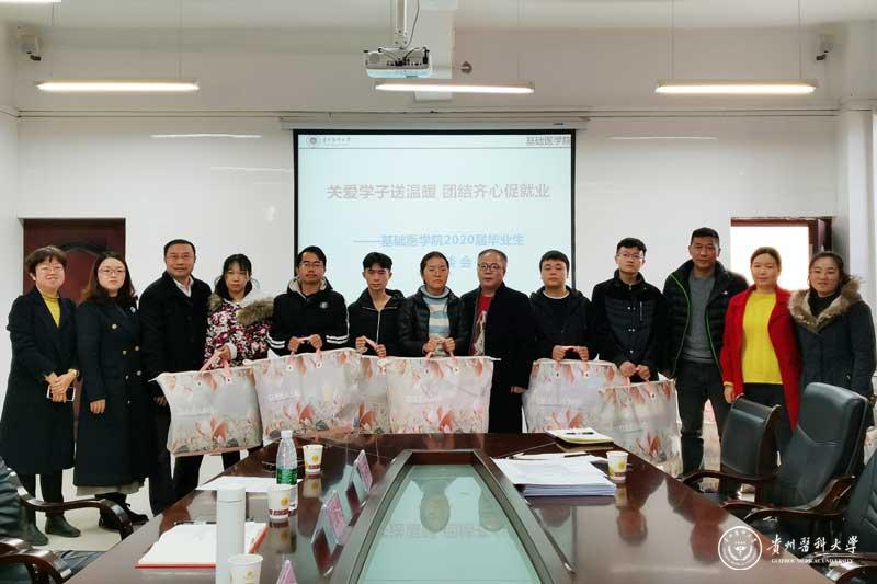12月13日,基础医学院在南校区务本楼201会议室召开“关爱学子送温暖 团结齐心促就业”2020届毕业生座谈会。基础医学院院长曾柱、党委副书记王妤煜、副院长刘杰麟、副院长张春林、教学管理科和学生科相关老师、辅导员及2020届毕业班学生参加座谈会。会议由学生科负责人陈培各主持。