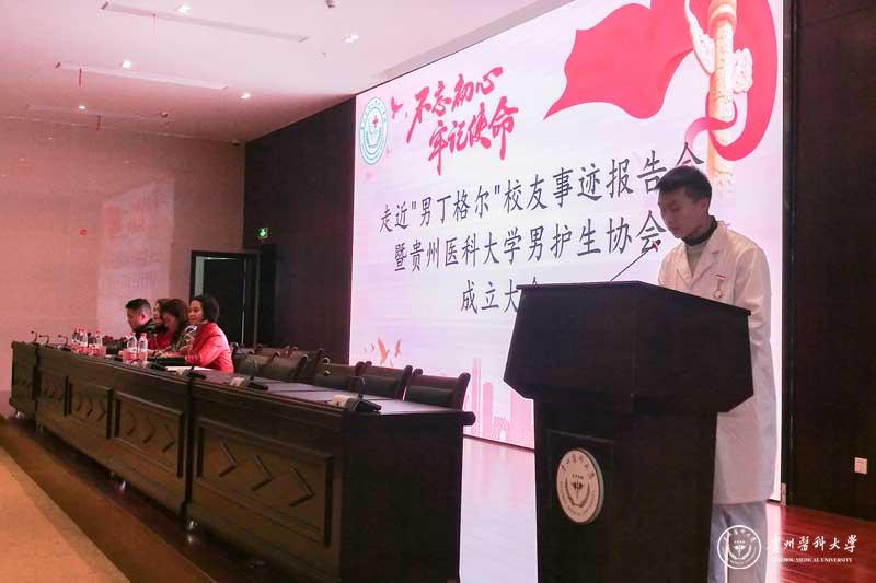 为进一步提升男护生的专业认知和学习兴趣,为男护生提供一个更广阔的学习交流和提升的平台,更好地帮助同学们做好职业生涯规划、坚定专业思想,并以此平台展示贵医男护生形象,让社会更多地了解男护生、了解护理,真正实现“无性别差异的护理”。护理学院12月17日在南校区道德讲堂召开“不忘初心、牢记使命”走进“男”丁格尔校友事迹报告会暨awc777万象城娱乐官网男护生协会成立大会。校团委副书记桂晓玲、护理学院党委书记杨英、党委副书记王秀红、副院长刘志燕、校友贵州省人民医院急诊留观输液中心护士长杜伟、护理学院教师、男护生协会成员及各班学生代表参加大会,大会由王秀红主持。