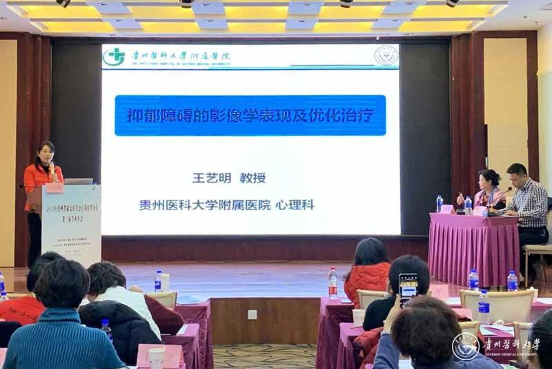 万象城官网大学生心理健康教育与咨询中心主任王艺明、副主任彭丹及陈玉莲、王凡参加了本次会议,贵州省康复医学会行为医学分会主任委员、心理中心主任王艺明教授致辞并做了讲座“抑郁障碍的影像学表现及优化治疗”。