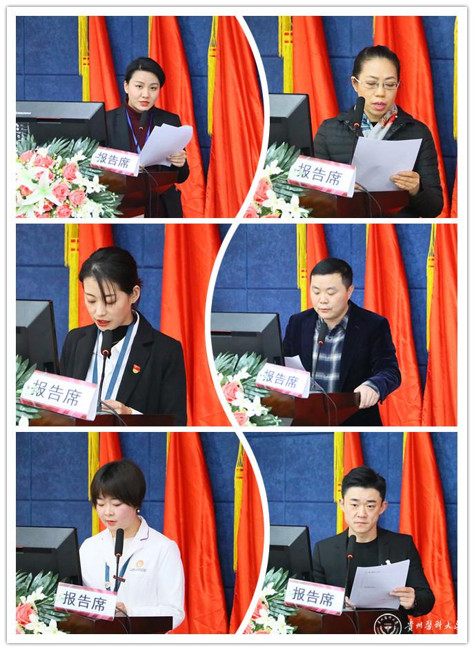 院财务科负责人刘倩对过去一年医院的财务总体运营状况作《医院财务工作报告》;工会主席杨蕾、经审委员会主任张忠平、院财务科及工会财务负责人张黎蓉、女工委员会主任廖健、人事科副科长、绩效管理办公室齐琦、工会办公室科员分别作《工会委员会工作报告》、《经审委员会工作报告》、《工会财务工作报告》、《女工委员会工作报告》、《绩效分配方案报告》、《公积金上调方案报告》对工会基层组织建设、人事管理、职工福利、工会经费使用等方面工作进行了全面总结。