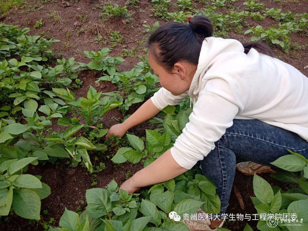 2019级生物医学工程专业的龚天会,家住开阳县宅吉乡保星村,帮助家人种了2亩土豆,土豆又称洋芋、马铃薯,是贵州重要的蔬菜、粮食作物,食用部位是块茎。是多年生草本植物,一年生或一年两季种植。
