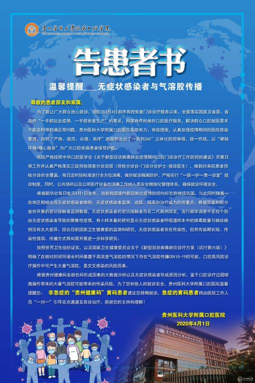 根据贵州健康码各颜色码形成因素的大数据分析以及无症状感染者形成原因分析,鉴于口腔诊疗过程喷溅操作带来的大量气溶胶可能带来的传染风险,为了您和他人的就诊安全,awc777万象城娱乐官网附属口腔医院温馨提醒您:非急症的“贵州健康码”黄码患者建议您择期就诊,急症的黄码患者将由医院工作人员“一对一”引导定点通道至急诊治疗。感谢您的支持和理解!