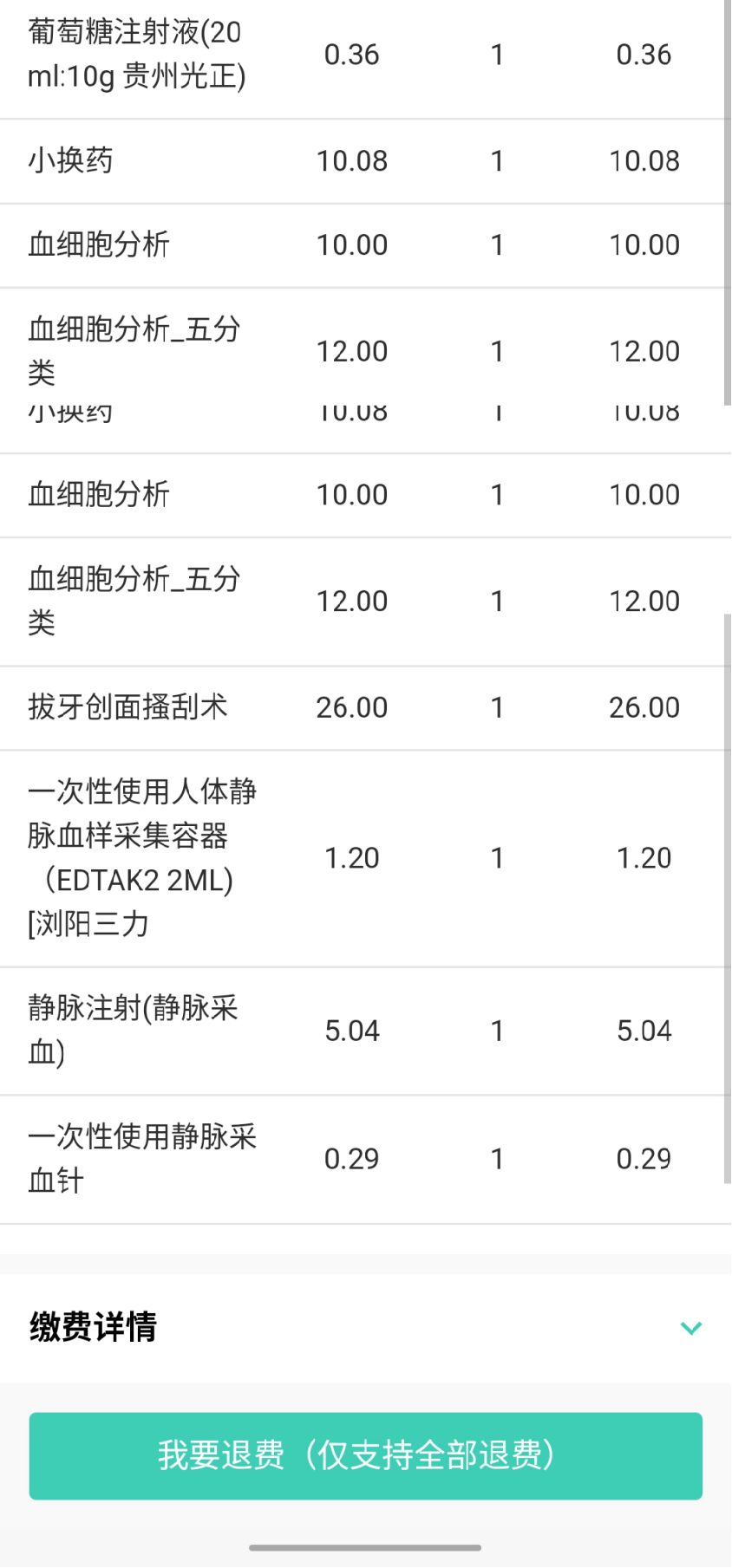4、如需退费,患者需前往医生处申请退费(若已取药需先前往药房退药 / 已执行项目则不可退),医生进行申请后,患者如需全部退费,患者需下拉缴费成功界面点击【我要退费】,退费款项原路返回,如需部分退费,需前往收费窗口退现金。