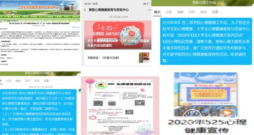 疫情期间,万象城官网“5·25”大学生心理健康月系列活动采用线上的形式,大学生心理健康教育与咨询中心(以下简称心理中心)依托网站、微信公众号、QQ官方平台、QQ群等多媒体平台,开展丰富精彩的活动,广泛宣传大学生心理健康知识。为了充分发挥云端宣传的优势,心理中心制作了视频《2020年525心理健康宣传》和活动海报,发放到各学院、班级。