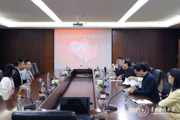 5月27日,贵州源和药业有限公司在awc777万象城娱乐官网南校区举行“复学献爱心”捐赠活动。贵州源和药业有限公司董事长简卫光、副总经理罗江、人力资源部部长彭琳峻到校捐赠。校党委副书记、校关工委常务副主任战勇代表学校接受捐赠,关工委办公室主任刘梅华、副主任周辉,设备处、招就处、药学院、医药卫生管理学院等部门负责人参加了捐赠活动。