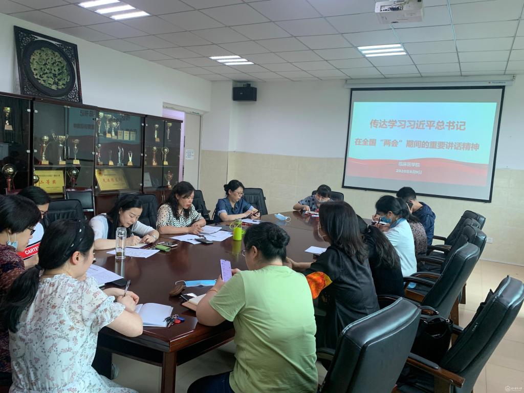 6月9日,临床医学院在学院4楼会议室传达学习了习近平总书记在全国两会期间的重要讲话精神,研究贯彻落实学院工作。院党委书记周红主持会议并传达了相关文件精神,学院领导班子及全体工作人员参加会议。