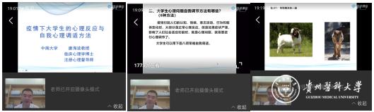 本次讲座邀请了中南大学临床心理学博士、注册心理督导师唐海波教授做了题为《疫情下大学生的心理反应与自我心理调适方法》的讲座,围绕疫情下大学生常见心理应激反应、心理问题的自我调适的策略、有趣的抑郁症测试三个方面进行了讲解。重点讲解了大学生心理问题自我调适的八种策略,分别为树立坚定信念、宣泄策略、认知改变策略、放松策略、交流策略、运动策略、环境调节策略、求助专业人士策略,强调“办法总比困难多”、“必要的求助是强者的表现”。同学们积极参与互动,纷纷表示通过本次讲座收获很大。
