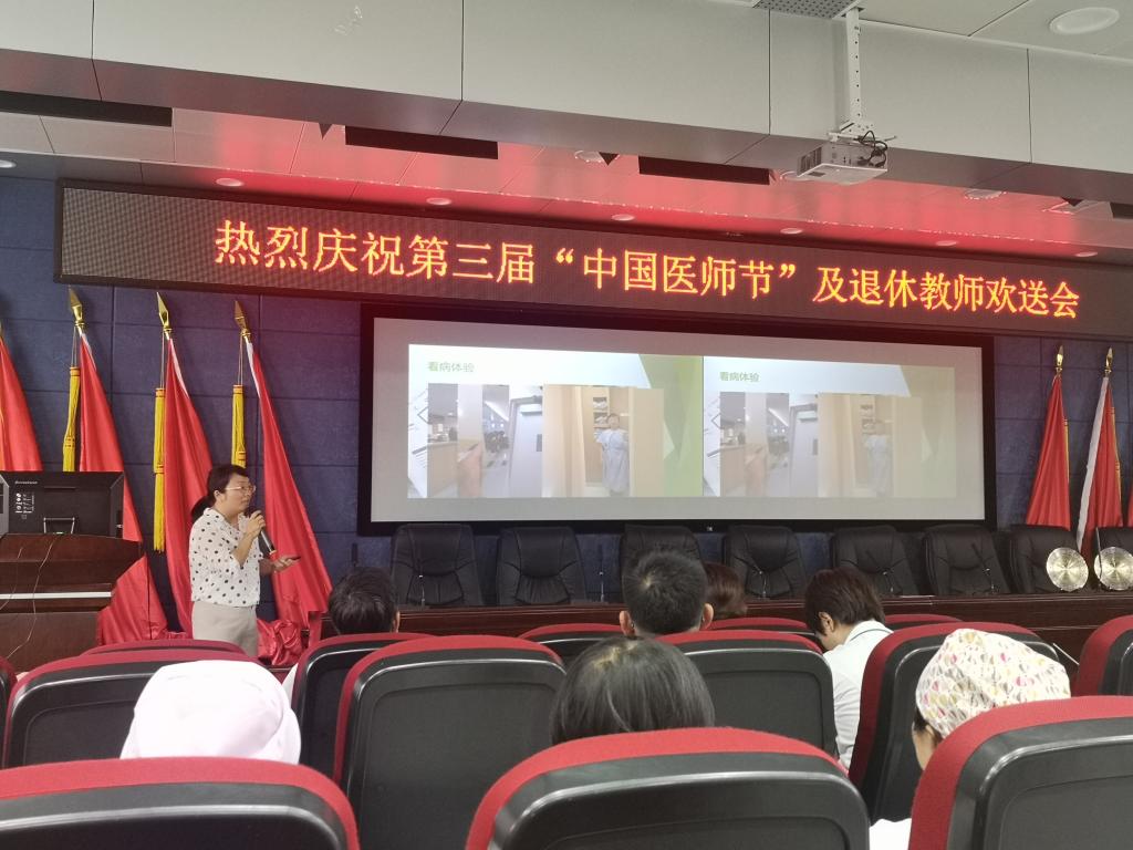 在“第三届医师节”来临之际,为“弘扬抗疫精神、护佑人民健康”,激发广大医师干事做事的热情,8月17日,口腔医学院医务科在行政楼五楼学术报告厅组织开展了“第三届医师节”系列活动暨退休教师欢送会,向长期奋战在临床一线的医师和医务工作者致以节日的问候和崇高的敬意。口腔医学院党委书记张军梅、副院长唐正龙出席活动,全院副科级以上干部、各科室核心成员和科室护理组组长参加活动。活动由副院长王永主持。