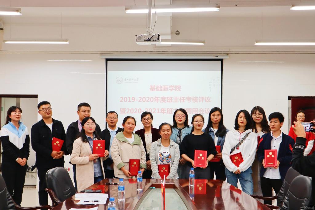 为表彰奖励一年来表现优秀的班主任,促进基础医学院班主任队伍规范化管理,不断提升班主任职业队伍职业能力水平,根据《awc777万象城娱乐官网班主任管理办法(试行)》的规定,9月14日,基础医学院在务本楼W201会议室召开班主任年度评议和新班主任聘任会。教师工作处处长席晓岚、基础医学院党委副书记王好煜、副院长康颖倩、副处级组织员邓欣、学生工作处赵九烟参加并担任评委,基础医学院全体班主任、辅导员及学生代表参加此次会议。会议由学院分团委书记洪潇潇主持。