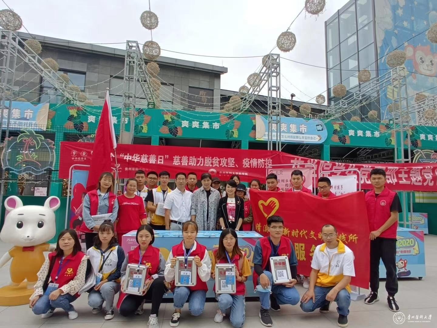 9月7日,药学院联合贵州省励志助学中心共同举办的“疫路童行益童乐园”99公益日义卖募捐活动启动仪式在花溪万科大都汇举行,贵州省励志助学中心秘书长周巧明,副秘书长旷光霞;药学院党委书记高秀丽,党委副书记王筑山,药学院学生科、团委、学生党支部、班主任及部分志愿者参加。