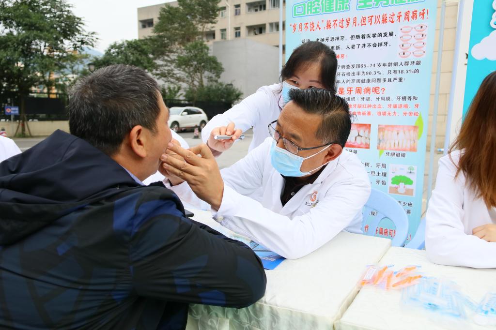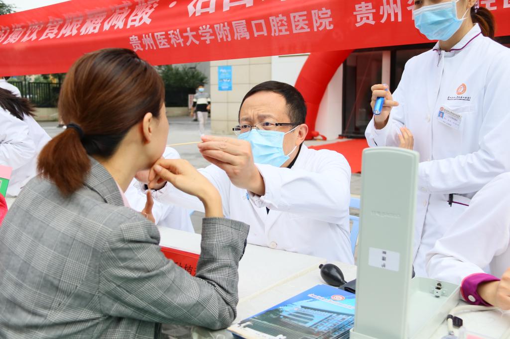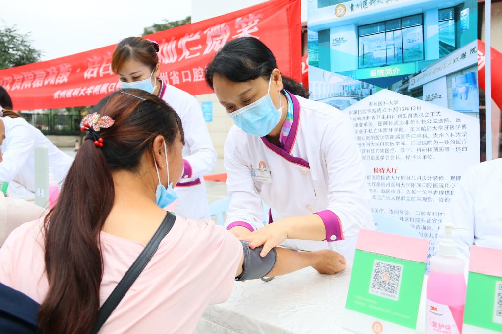 此次活动主活动场地设在医院新接待大厅,以口腔健康与全身健康的关系为切入点,在前期做了大量筹备,从活动方案的细致调整到义诊场地的最终确定、从赠送牙具的精心挑选到预热宣推的大力推广,无一不体现贵医大口腔的专业和态度。为让广大市民得到更好的义诊体验,口腔医院义诊团队涵盖各临床科室专家及南丁格尔志愿者服务队医护人员,全方位为前来咨询的市民做好口腔检查和相关诊疗。