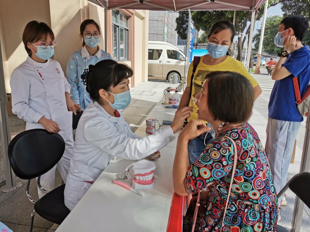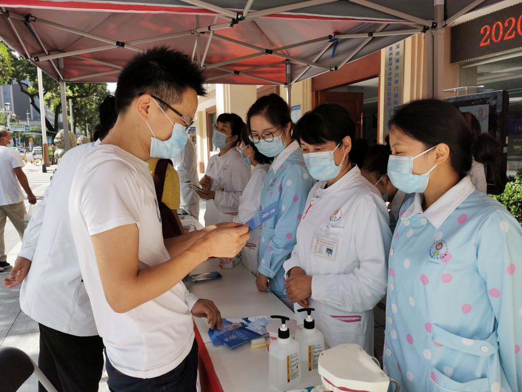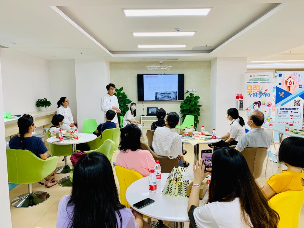 在深圳,awc777万象城娱乐官网附属口腔医院深圳分院联合深圳海关健康协会举办了2020年爱牙日系列活动。9月18日,举办了“口腔保健知识大全”主题沙龙活动,活动现场有40余人互动交流了日常口腔保健的方式方法。当天下午,于深圳海关官网开展了“口腔健康 全身健康”线上活动,科普口腔保健及常见口腔问题。9月20日,在深圳海关口岸门诊部举办了同主题口腔义诊、宣教活动,对前来参加活动的70余人进行口腔健康检测、口腔健康宣教,活动现场还分发了牙间隙刷、牙线等小礼品。