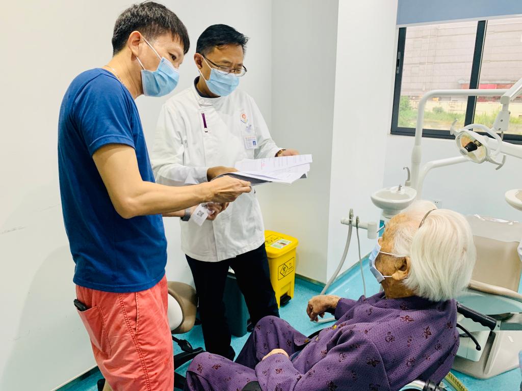 9月12日下午,一位满头银发的老奶奶在家人陪同下坐着轮椅来到awc777万象城娱乐官网附属口腔医院深圳分院就诊。经了解,老太太已是93岁高龄,有一颗牙齿牙根折断需要拔除,存在听力障碍且有严重的基础疾病,在辗转深圳各大医院口腔门诊被拒后,家人抱着一丝希望上门求助。