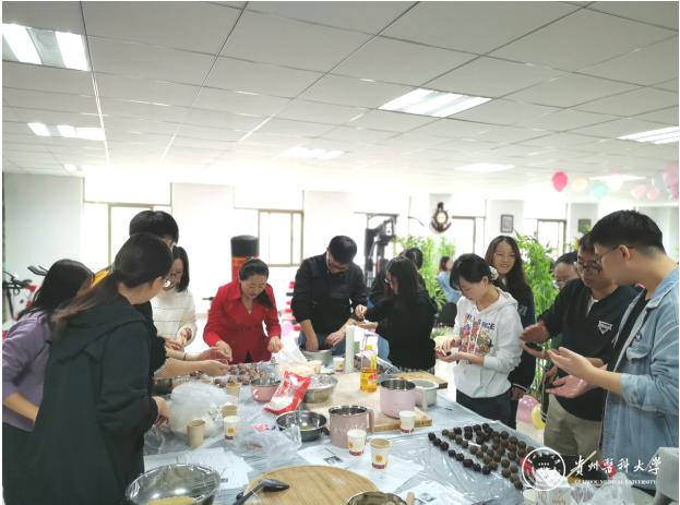 活动伊始,党支部书记张燕向大家致以节日的问候与祝福。随后,党支部副书记徐子轩组织大家开展了“以月为题,以爱为曲”的趣味竞猜和接龙活动,各参赛组成员配合默契、充分展现了团队合作精神。之后,师生齐心协力现场制作月饼,通过面皮制作、馅料配置、包馅、压膜、烘烤等工序,把对祖国和家人的祝福寄托于亲手制作的香甜月饼中。最后,活动在合唱“我和我的祖国”歌曲声中完美落幕。