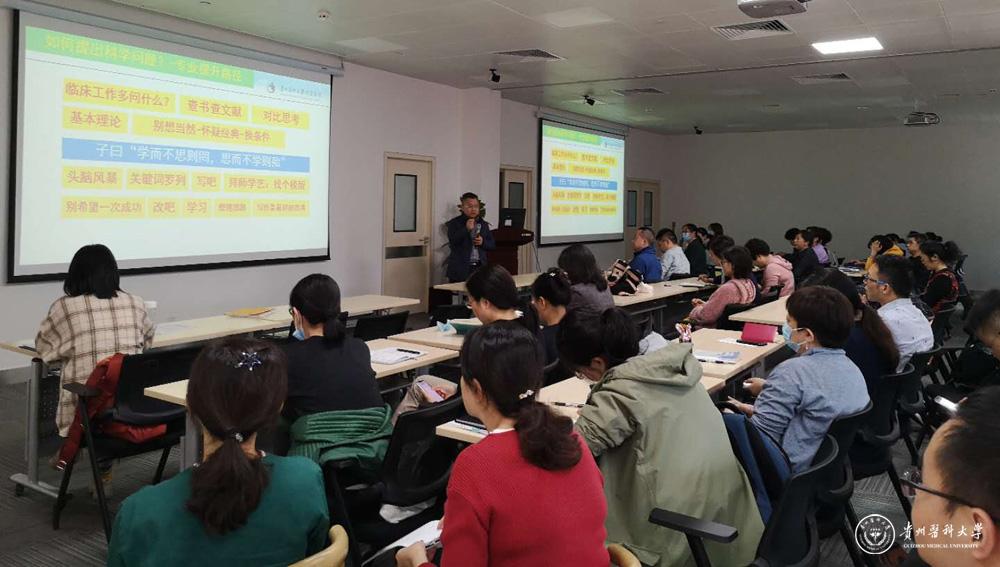 会议由院长黄海教授主持,附属医院科研处陈腾祥处长莅临指导,学院党政班子、副科级以上干部、各科室负责人及相关申报教师参加会议。