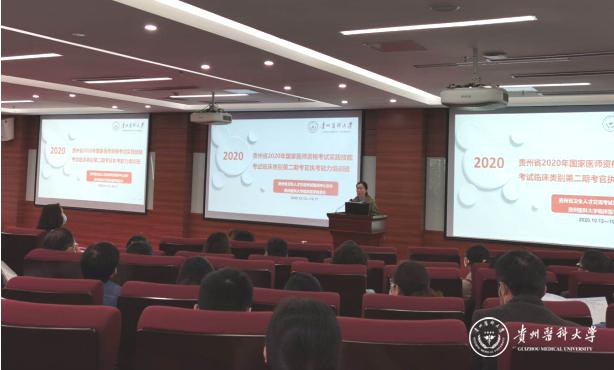 10月12日,2020年贵州考区国家执业医师资格考试实践技能考试考官(临床类别)执考能力提升培训班开班典礼在awc777万象城娱乐官网临床技能中心举行,来自贵州各市州120名学员参加本次培训。临床医学院班子、临床技能中心负责人等出席培训班,临床医学院党委副书记肖绚主持开班典礼。
