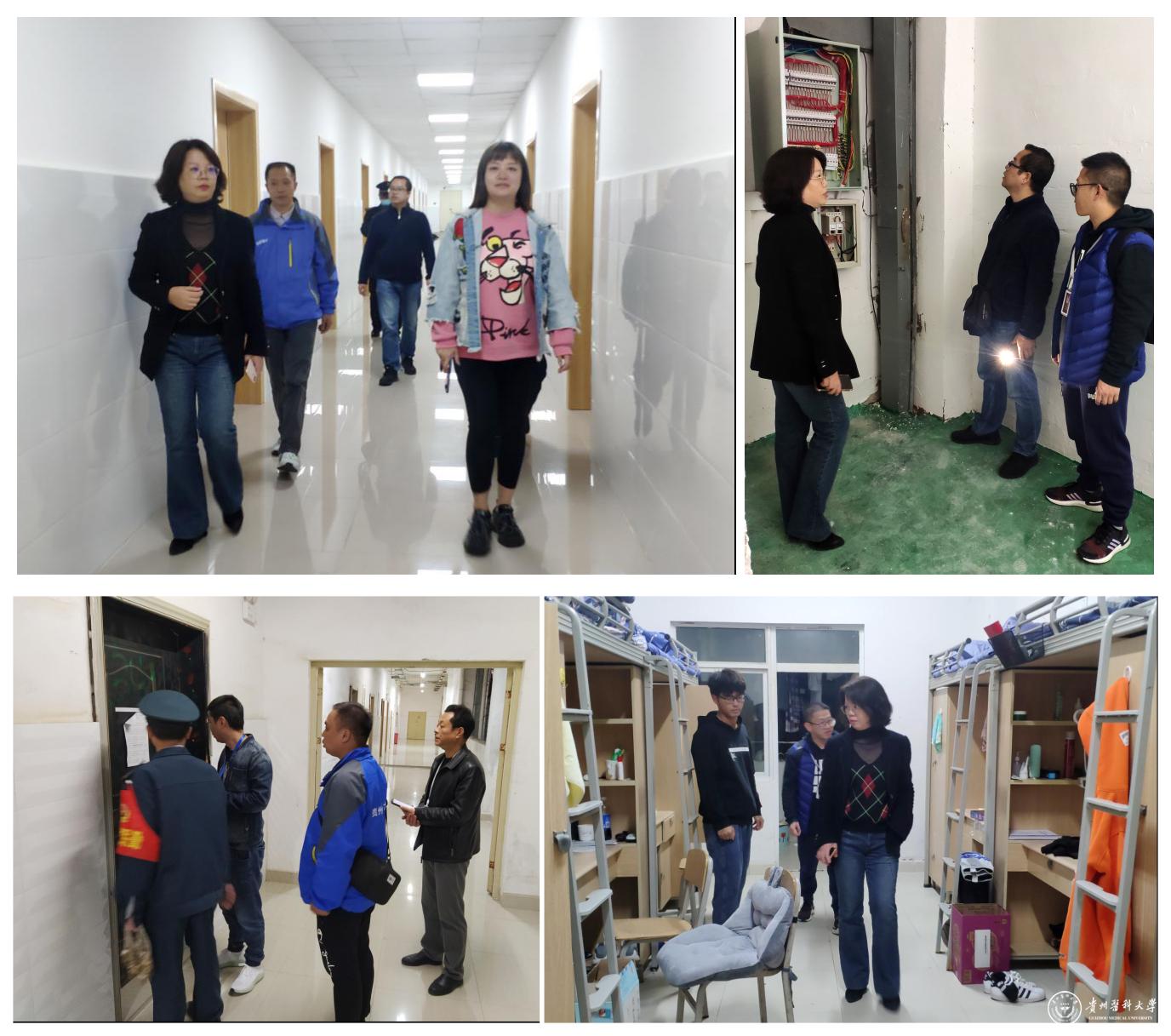 10月26日至28日,副处长吴陵江带领特种设备科、维修服务中心对南北校区特种设备的运行、使用情况,水电、行政零星维修及各楼宇漏水情况进行了全面排查,进一步规范了维修工作的管理,提升了服务效率和服务质量,保障了学校的用水用电安全;副书记、副处长周云蓉带领市场中心、宿管中心对学校经营性用房的经营秩序、消防设施设备是否齐备和学生宿舍的出入登记管理、寝室学生违规使用大功率电器、寝室内及过道卫生整洁等情况进行全面排查,进一步加强了经营性用房及学生宿舍的安全管理,保障了学生安全。