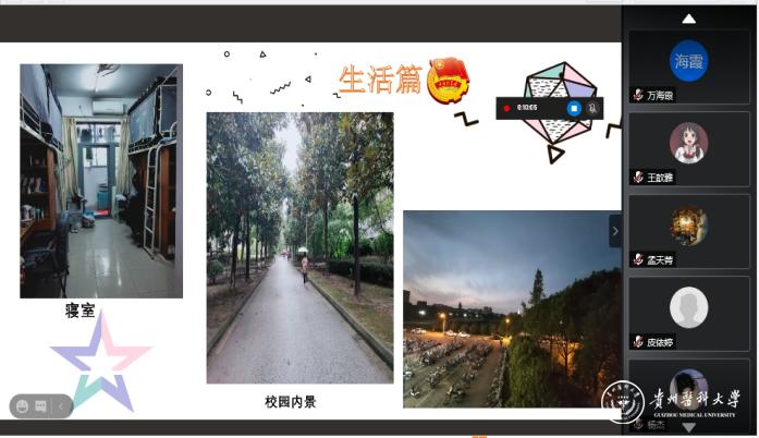 团支部书记罗曼玲通过PPT和短视频的形式汇报了目前同学们在苏州大学学习工作、日常生活、宿舍建设等方面的情况,通过两校学习课程的比较、课外实践的参与、外出参观学习等方面,展现了万象城官网交换生同学们良好的精神风貌和昂扬的学习热情。罗曼玲在汇报最后,代表同学们对学校和学院老师的关心表示感谢,她说远在他乡,心怀对知识的渴望,大家一定会用实际行动证明自己,谨记自己贵医人的身份,努力前行,不负众望。