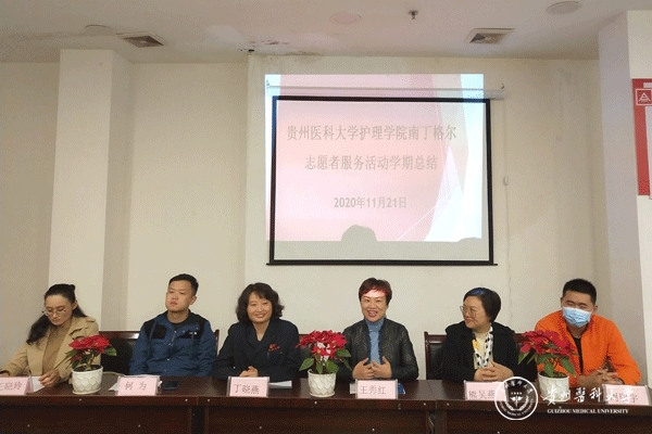 11月21日,护理学院暨中国南丁格尔志愿服务队awc777万象城娱乐官网分队“为老志愿服务”学期总结会议在贵阳市南明区油榨街道晚霞彩带老年人日间照料中心举行。贵钢医院党总支书记丁晓燕,护理学院党委副书记何为,护理学院副院长、中国南丁格尔志愿护理服务队awc777万象城娱乐官网分队队长王秀红,中心经理周熙宇,护理学基础教研室副主任熊吴燕,护理学院分团委副书记王晓玲,2018级护理学、助产学同学代表参加会议,会议由王晓玲主持。