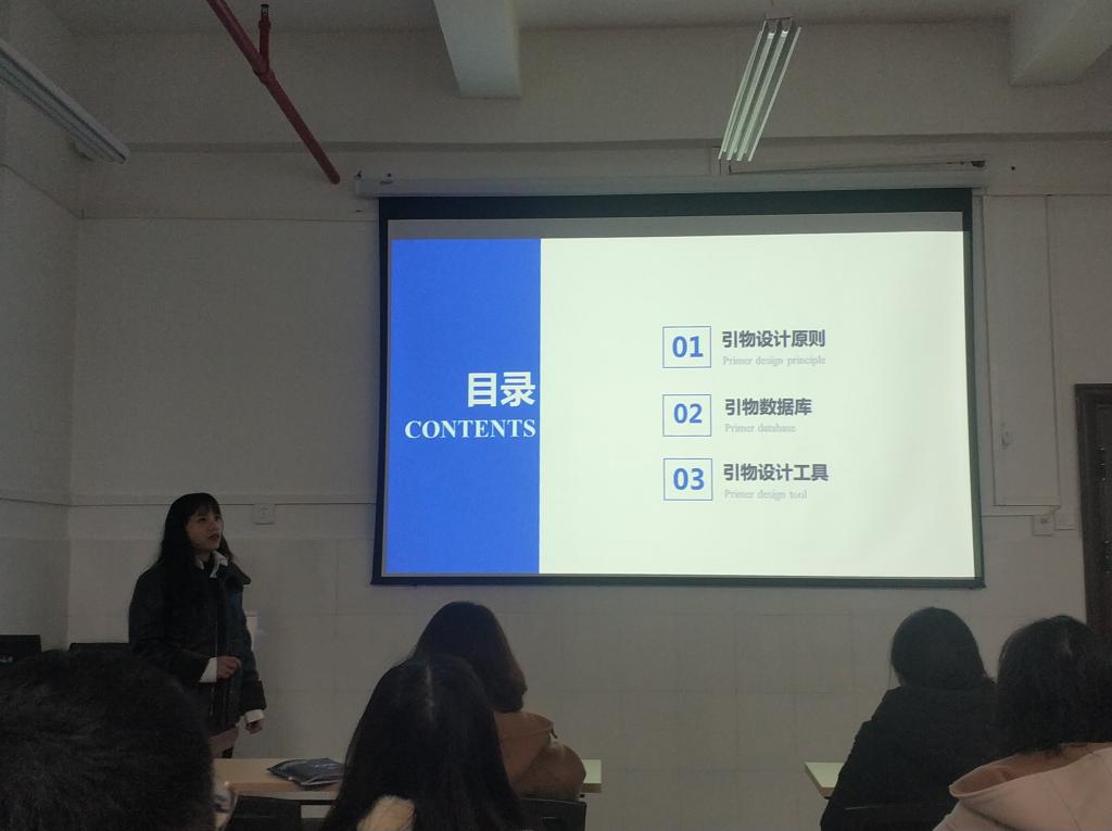讲座上,徐娅以图文和动画结合的形式直观地给同学们讲解了荧光定量PCR引物设计工具运用、引物参考所需网站的运用、如何对比引物参数等,并以实验中具体得出的数据为例,详细介绍了引物参数与实验结果的对比过程,给即将开展实验和已经在科研的研究生同学们上了一堂实用的讲座。