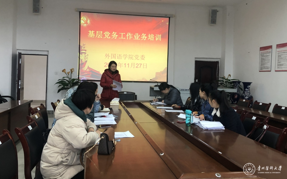 11月27日,外国语学院党委举办了基层党务工作业务培训会,3个党支部的支部书记和支部委员共计10人参加了培训。