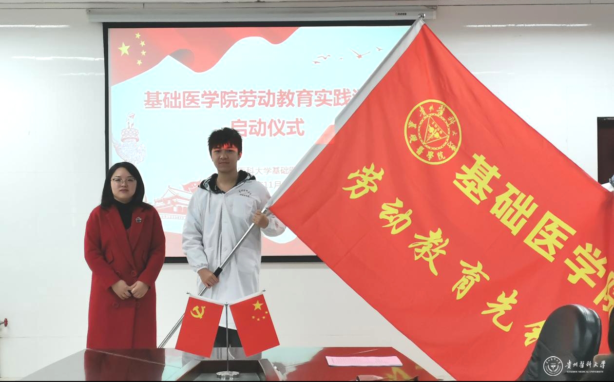 王妤煜为首支实践队伍2025届“协和班”授“基础医学院劳动教育先锋队”旗。她谈到,在全国教育大会上,习近平总书记要求把劳动教育纳入培养社会主义建设者和接班人的总体要求之中,明确提出构建德智体美劳全面培养的教育体系,万象城官网的劳动教育课程正是立足于此开设的,是落实习近平总书记重要精神的举措。她强调,劳动教育是人生第一教育,特别是在如今我国正处于实现“两个一百年”的关键时期,更要加强对劳动教育的认识,劳动可以树德、可以增智、可以强体、可以育美,具有综合育人价值,“协和班”作为全校重点创新班级,其培养目标是卓越拔尖的医学人才,作为全校同学的榜样与标杆,更应该起到表率作用,今天,“协和班”接过先锋队的红旗,便是接过了责任与担当,希望同学们努力做到身体力行,展现出贵医学子的昂扬风采,不仅要在劳动教育中树楷模、争先进,更要在平时的学习生活中,把劳动精神发扬光大,让劳动最光荣、劳动最崇高、劳动最伟大、劳动最美丽在校园内蔚然成风!