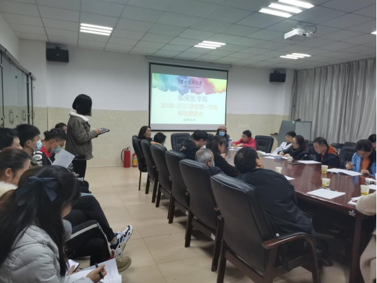 为加强教学管理、提高教学水平、了解教师上课情况及学生学习情况,临床医学院11月25日在临床医学院会议室召开师生座谈会。临床医学院副院长戚璐、艾戎,教学科研管理科、生产实习科、学生科、临床技能中心、辅导员、本学期参与教学的各教研室负责人及老师、 2016、2017级临床医学学生代表参加座谈会。会议由临床医学院党委书记周红主持。