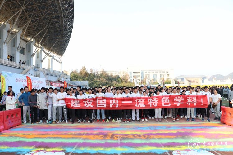 12月21日, 2020年校园彩虹跑暨校园迷你马拉松比赛在南校区激情开赛。来自全校各学院运动员代表、国家攀岩集训队(贵州)、国家滑板集训队(贵州)以及运动与健康学院全体成员共1000余名师生在校园里享受了一场彩色的狂欢。