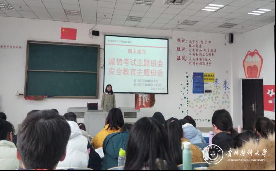 2020级开展了“诚信考试,守住内心的一份坚持”、“内不欺己,外不欺人”等主题班会,告诉同学们诚信的基本含义是守诺、践行、无欺。诚信不仅是一种品行,更是一种责任;不仅是一种道义,更是一种准则;不仅是一种声音,更是一种资源,是为人之根本。希望同学们努力复习,充分做好迎考准备,用行动营造"诚信考试光荣,违纪作弊可耻"的考试氛围,为贵医的校园带来一股清新的诚信之风!辅导员重点强调了学生在日常学习生活中要严格遵守校规校纪,地面凝冻提示同学们注意出行安全,禁止打闹,小心慢行。实行严格的请假制度,严禁翻越隔离网,禁止使用违规电器。