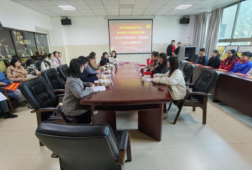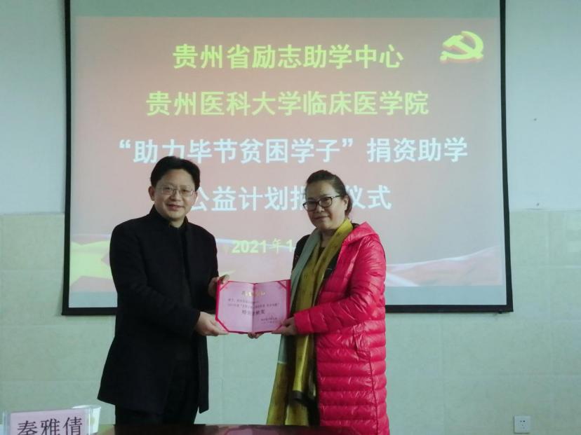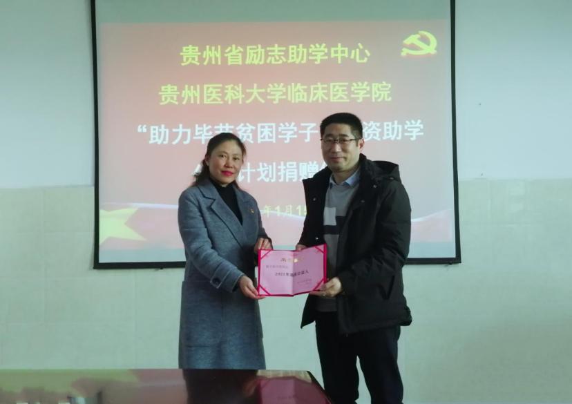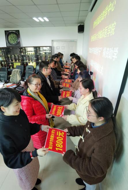 1月15日,贵州省励志助学中心(民盟省委直属关爱教育支部)向万象城官网临床医学院贫困学生进行捐助。民盟贵州省委社会服务处副处长龙咏娟,贵州省励志助学中心秘书长、民盟省委直属关爱教育支部主委周巧明,副秘书长旷光霞,秘书长助理杨治毅,以及万象城官网党委统战部副部长任婷、资助管理中心副主任贲琛、临床医学院党政班子,全院辅导员和30名毕节籍受资助学生参加。仪式由临床医学院党委副书记王筑山主持。