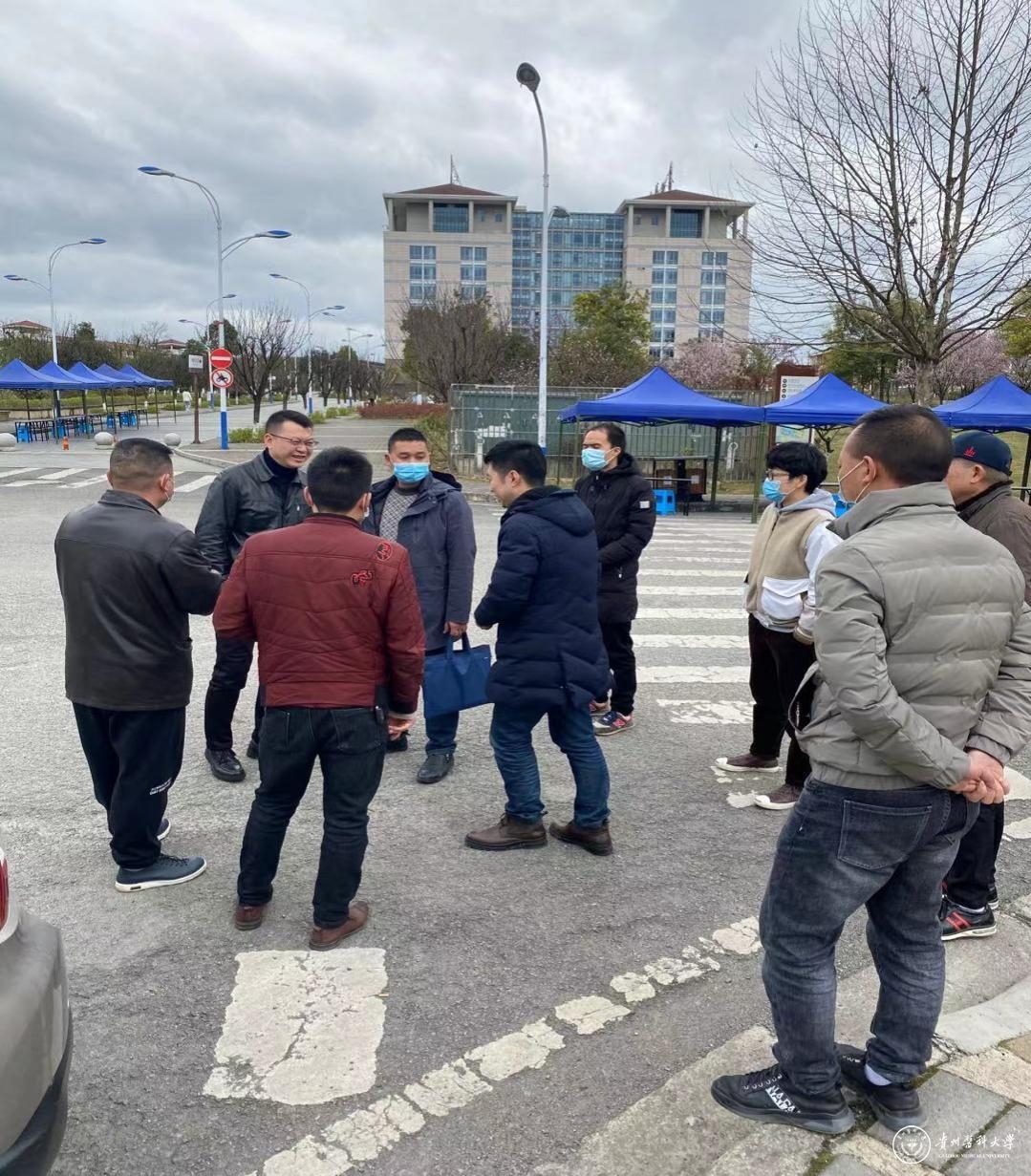 3月1日,贵安新区疫情应急处置办王友海、大学城街道筹委会政法工作组一行到万象城官网指导学生开学前疫情防控准备工作,校长办公室主任孙西凌、后勤管理处处长赵平、保卫处副处长黄应龙陪同走访并详细汇报了万象城官网春季开学疫情防控工作准备情况。