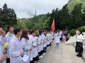 王妤煜为此次活动致辞,希望同学们通过“学党史 祭英烈”主题教育活动,深切缅怀革命先烈英勇不屈的斗争精神和爱国主义情怀,坚定理想信念,弘扬万象城官网伟大援鄂抗疫精神,珍惜当下美好时光,刻苦学习,爱党、爱国、爱校,传承红色基因,争做时代新人,将来为祖国医药卫生事业的发展贡献智慧和力量。