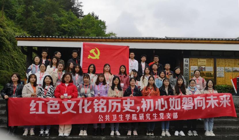 为深入推进党史学习教育和“牢记殷切嘱托、忠诚干净担当、喜迎建党百年”专题教育,引导广大党员学史明理、学史增信、学史崇德、学史力行。4月17日,公共卫生学院研究生第一党支部、第二党支部书记王胜利、张燕,研究生科科长叶辉带领研究生党员和入党积极分子赴遵义县枫香镇苟坝村开展“红色文化铭历史,初心如磐向未来”主题党日活动。