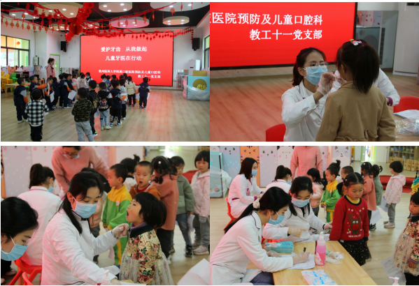 教工十一(预防及儿童口腔)党支部开展了口腔保健知识讲座,通过趣味问题和有奖竞猜吸引小朋友的兴趣并积极参与,通过通俗易懂的语言和生动形象的讲解让他们认识到龋齿发生的原因、龋齿的危害以及如何保护好牙齿等。