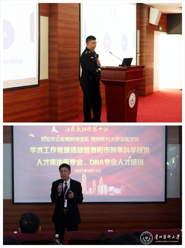 4月22日,法医学院/法医司法鉴定中心在awc777万象城娱乐官网北校区临床技能中心207会议室举办了法医大讲堂第十讲——贵阳市公安局刑侦支队与贵州大学法医学院/法医司法鉴定中心党建·学术活动暨贵阳市刑事科学技术人才库法医专业DNA专业人才培训会。贵阳市公安局刑侦支队政委、第十三届全国人民代表大会代表石蓉、贵阳市公安局刑侦支队副支队长李勇胜及贵阳市公安局全体法医技术人员、awc777万象城娱乐官网法医学院/法医司法鉴定中心党委书记兼法医司法鉴定中心副主任黄江、法医学院院长兼法医司法鉴定中心主任王杰及法医学院/法医司法鉴定中心全体鉴定人员参加。会议由张颖、杨晖和万昌武主持。