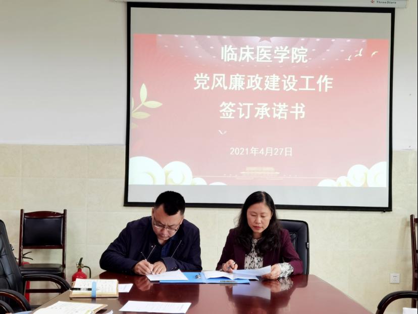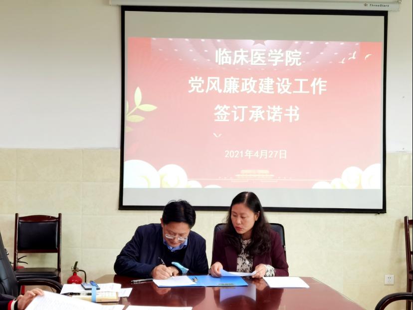 为进一步推动党风廉政责任制落实,深化廉洁自律工作,周红与班子成员、党支部书记进行党风廉政建设约谈。全体科级干部、党支部书记签订《临床医学院干部廉洁自律承诺书》。