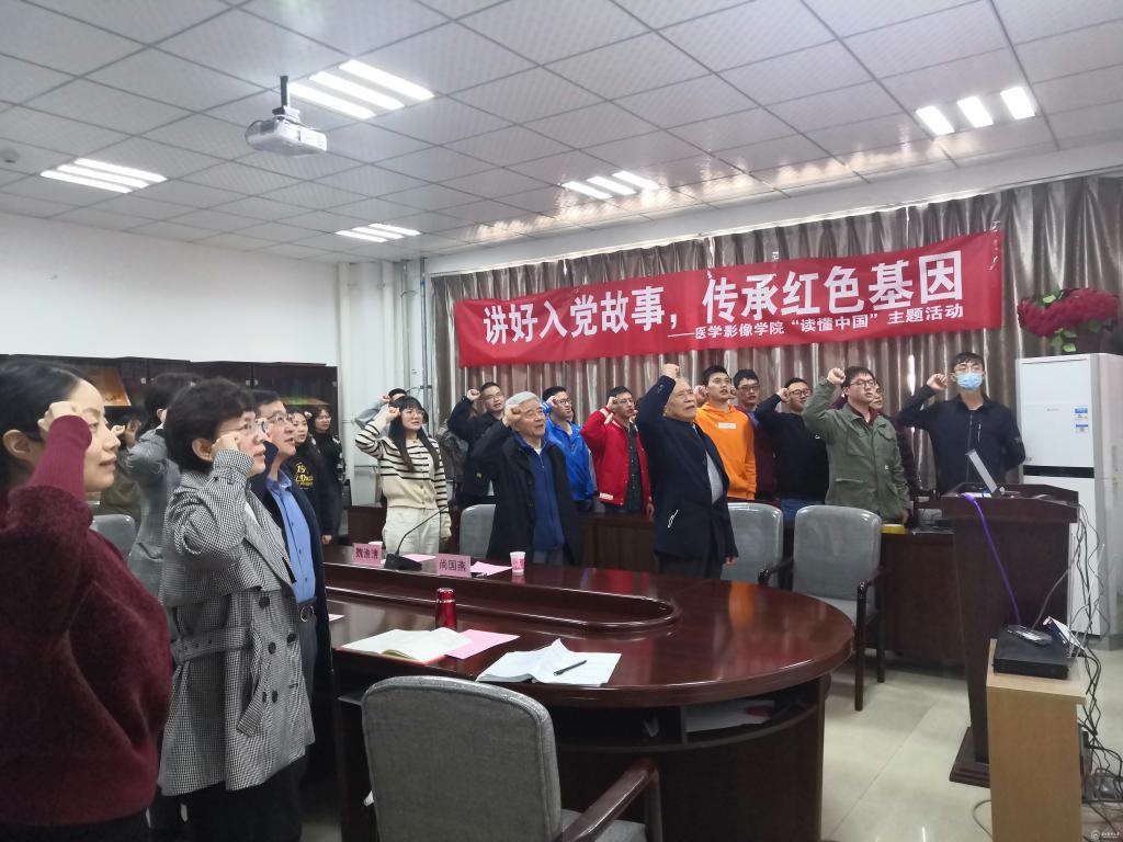 为迎接庆祝建党100周年,积极响应教育部号召开展“读懂中国”活动。4月20日,医学影像学院以“讲好入党故事,传承红色基因”为主题,特邀原贵阳医学院附属医院影像科退休教师尚国燕、魏渝清两位老党员讲入党初心及为党奋斗真实感悟,将红色精神代代传承。学院党委班子成员、教职工党支部全体党员、学生党支部全体党员以及入党积极分子参加。活动由我院正处级组织员李兴主持。