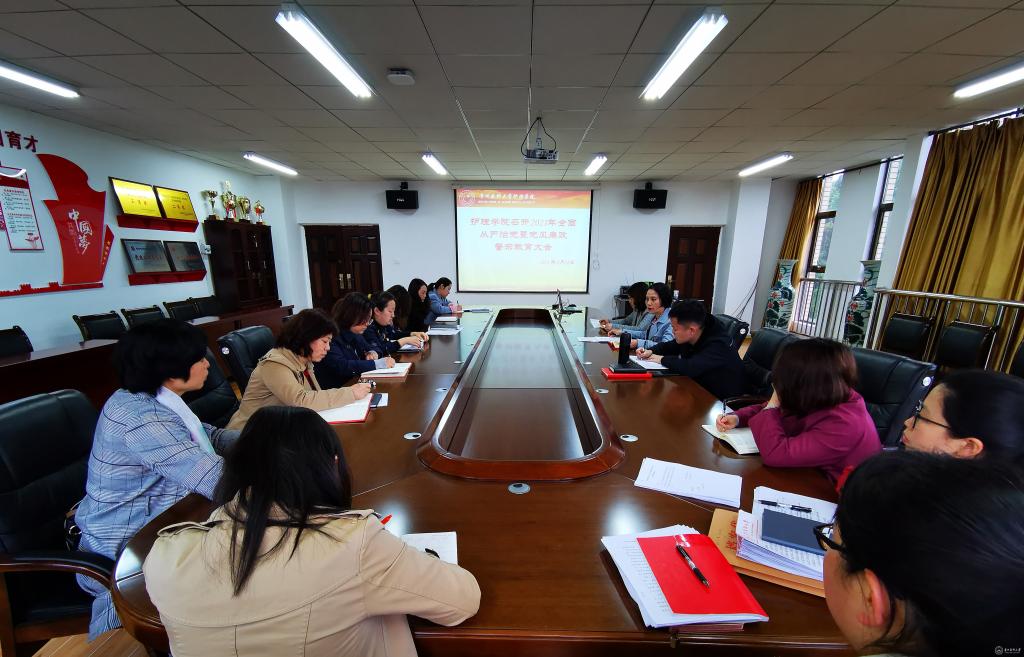 4月28日,为深入贯彻落实十九届中纪委五次全会和十二届省纪委五次全会精神,坚持“严”的主基调,发扬“实”的好作风。护理学院在南校区百川楼五楼会议室召开2021年全面从严治党暨党风廉政警示教育会。院党委书记杨英、院党委副书记何为、副院长刘志燕、副科级以上干部、各党支部书记及全体辅导员参会。会议由杨英主持。